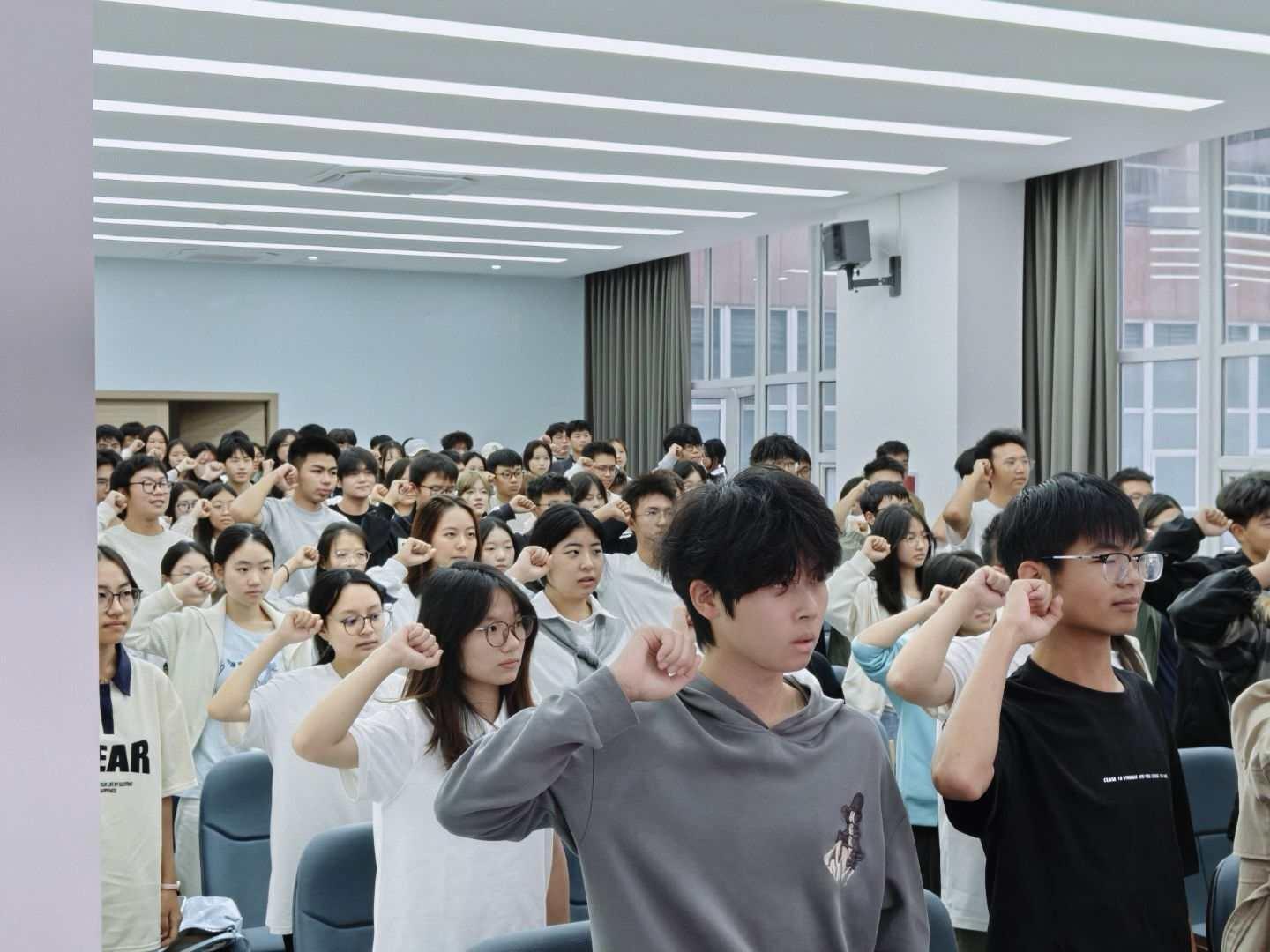 在主席团代表的带领下,团委、学生会全体成员庄严宣誓,承诺将恪守服务宗旨、严明纪律观念、发扬奉献精神,为将团委、学生会建设成为团结、和谐、优秀的集体而不懈奋斗。