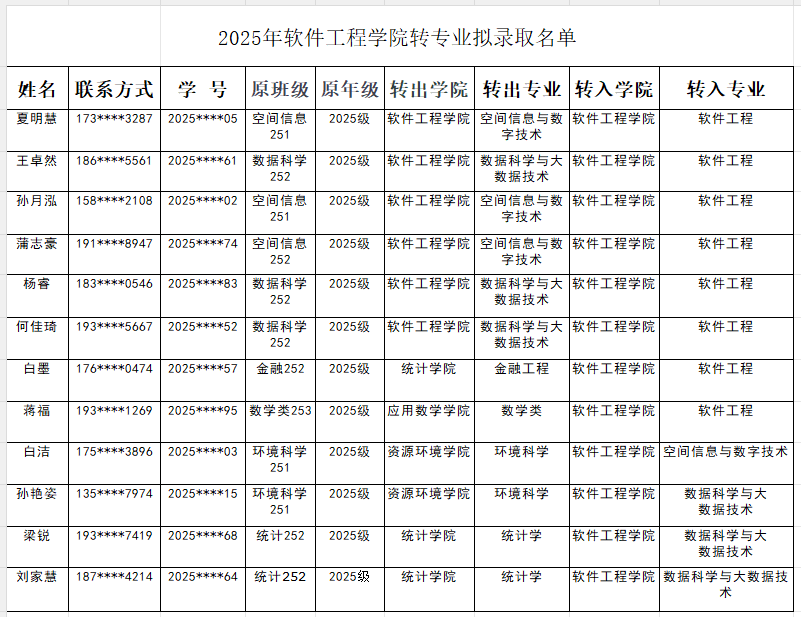 根据《成都信息工程大学本科学生转专业管理办法》(成信校发〔2019〕99号)、《风月同天-风月同天官网-风月同天网 2025级转专业实施细则》文件要求,现将拟录取名单公示。
